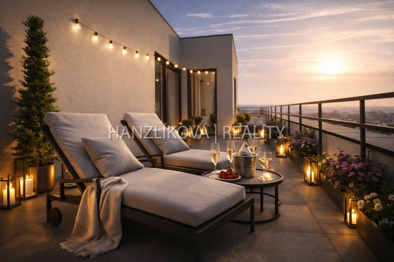 Hledáte prostor pro rodinu, ale nechcete řešit údržbu domu a zahrady? Tento výjimečný byt o dispozici 6+kk a ploše 152 m² nabízí vše, co od rodinného domu očekáváte – prostor, soukromí i venkovní zázemí – a navíc komfort moderní novostavby.