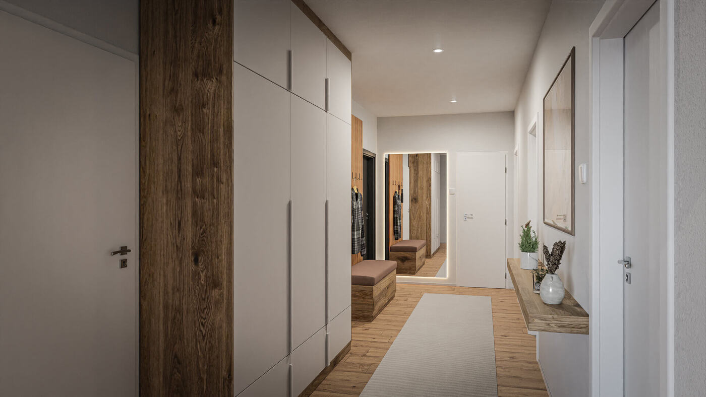 Byty Centrum Rožnov představují moderní bytový komplex skládající se ze dvou budov s celkovým počtem 20 bytových jednotek. Dispozice bytů zahrnují praktické varianty 3+kk, prostorné byty 4+kk i luxusní střešní penthousy 6+kk. Velikosti bytů se pohybují od 81,3 m² až po 132,23 m², přičemž každý byt disponuje prostornou terasou nebo balkonem, což zajišťuje dostatek soukromí i kontakt s okolní přírodou.